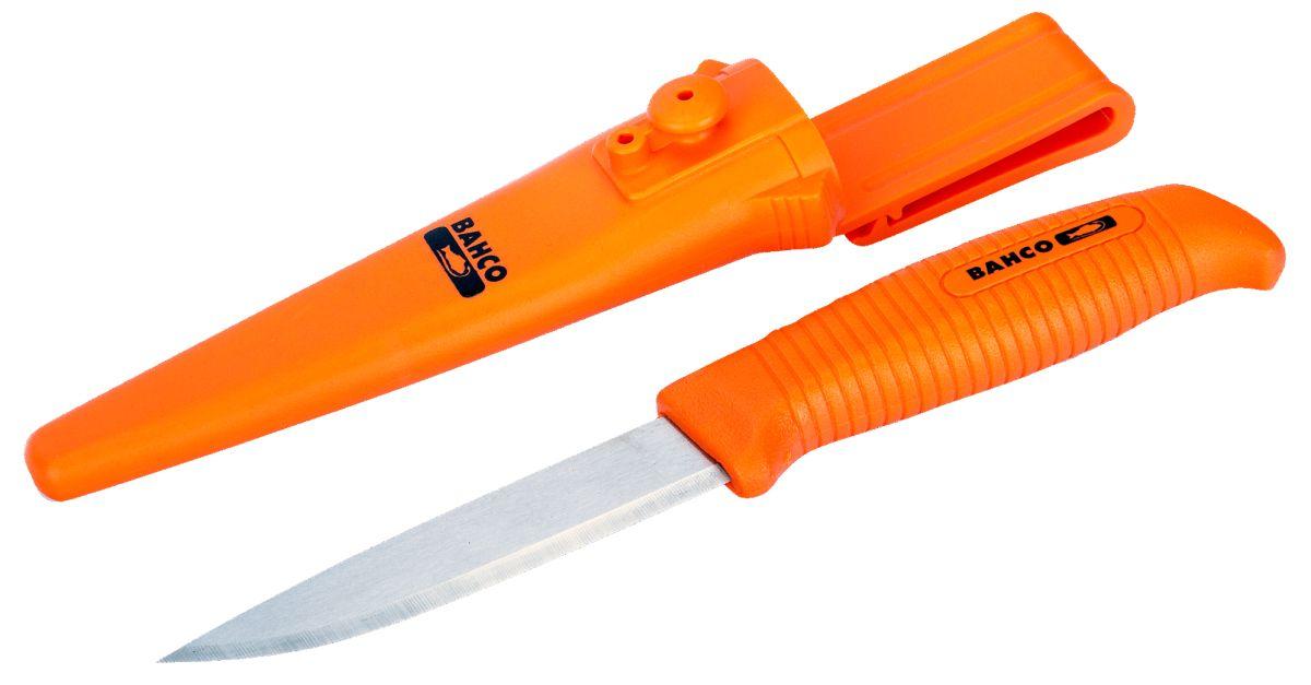 Cuchillo con hoja de acero inoxidable resistente. Mango de un componente que ofrece un agarre cómodo y seguro. Se suministra con una práctica funda especial con doble botón para llevarlos en el cinturón. Hoja de 100 mm de longitud. El cuchillo tiene una longitud total de 220 mm y su peso de 90 gramos.