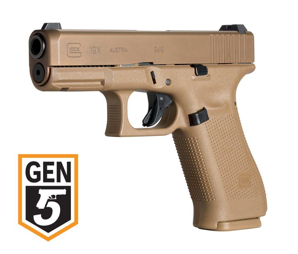 La 19x viene con la corredera en acabado coyote con un tratamiento anti corrosivo y es ambientra.