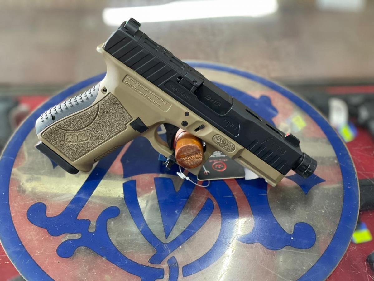 Pistola Kral Arms KR19 FDE. Clon Glock 19. Calibre 9mm. Dos cargadores de 15 disparos. SISTEMA OPTIC READY, cañon roscado, Miras de fibra. Backstraps intercambiables, incluye embudo. Kit de limpieza completo.