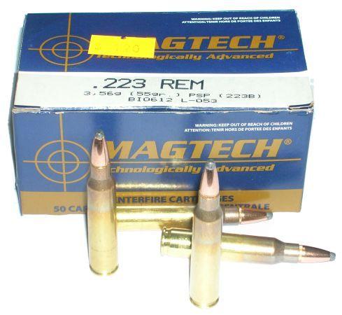 Munición calibre .223 Rem. Tipo de punta PSP. De 55 grains. Caja de 50 unidades.