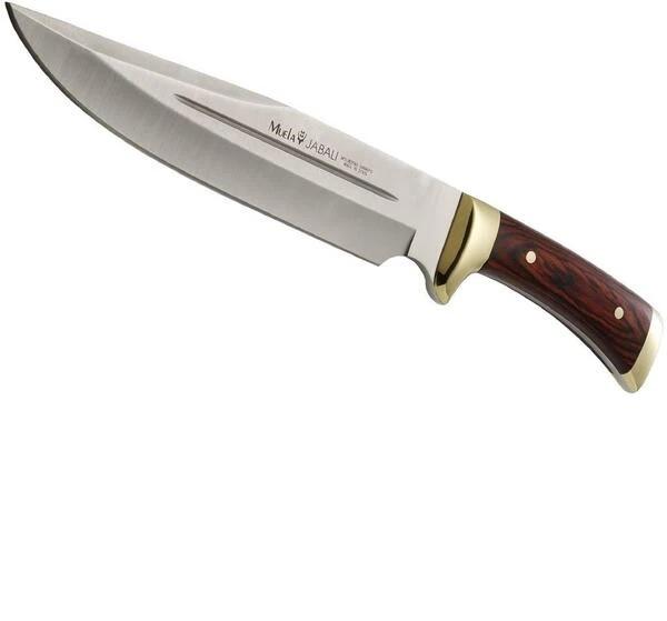 Mango Madera Prensada de Coral. Funda de Cuero Refinado. Hoja: 21 cm. Largo total: 34 cm. 5mm de espesor. Ancho de la hoja: 4,3 cm. Peso: 450 gr. Acero: Molibdeno Vanadio X50CrMoV15 MOVA (1.4116). Dureza: 57-58 HRC
