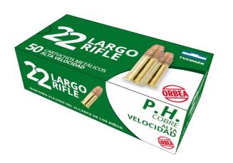 Munición Orbea calibre .22 LR. Alta velocidad. Punta hueca. . Caja por 50 unidades.