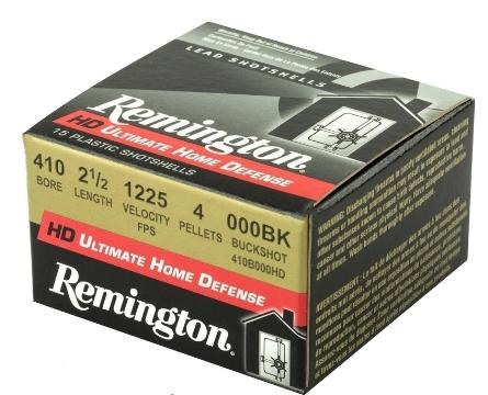 cartuchos Remington cal 410 2.5 " 000 1,225 pies por segundo, perdigones 000 de 2-1 / 2 pulgadas, 4 perdigones, 15 cartuchos por caja