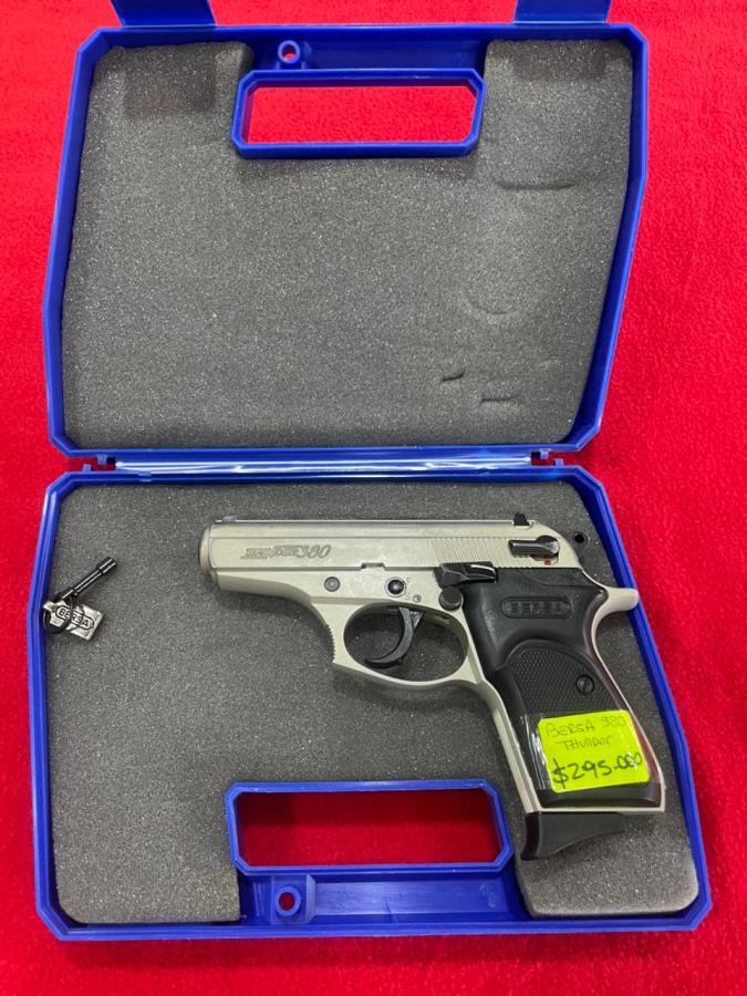 Pistola Bersa modelo Thunder. Calibre .380 Terminación niquelada. Capacidad de 10 tiros muy buen estado.