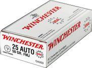 Munición calibre .25 Auto. Tipo de punta Full Metal Jacket. De 50 grains. Caja por 50 unidades.